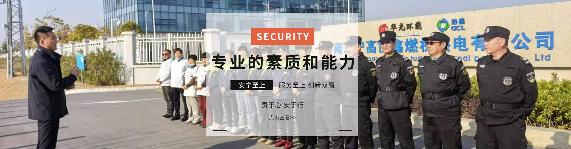 公司始終堅(jiān)持“務(wù)實(shí)、求精、效益、創(chuàng)新”的質(zhì)量方針,奉行“維護(hù) 雇主事業(yè)管理秩序,捍衛(wèi)雇主事業(yè)運(yùn)營(yíng)安全,致力于雇主事業(yè)長(zhǎng)期發(fā)展的保駕護(hù)航”服務(wù)宗旨,不斷加強(qiáng)公司管理層和員工隊(duì)伍建設(shè),以專(zhuān)業(yè)化、標(biāo)準(zhǔn)化的優(yōu)質(zhì)高效的服務(wù)質(zhì)量為各企事業(yè)單位提供專(zhuān)業(yè)的安全保衛(wèi)及物業(yè)管理服務(wù)。